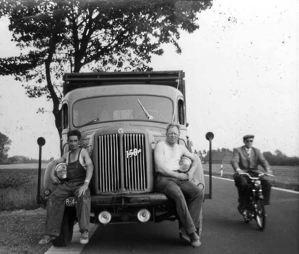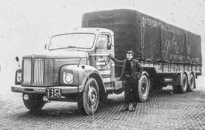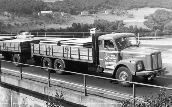 Vos heeft in deze periode heel veel vrachten stelconplaten gereden naar bestemmingen in binnen- en buitenland. De Scania Vabis combinatie was daar uitstekend geschikt voor. De stelconplaten werden geladen in de plaats De Steeg.