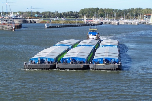 Met onze 6 duwbakken vervoeren we alles over binnenlandse kanalen en grote rivieren. Van stalen buizen tot aan veevoeders en droge lading.